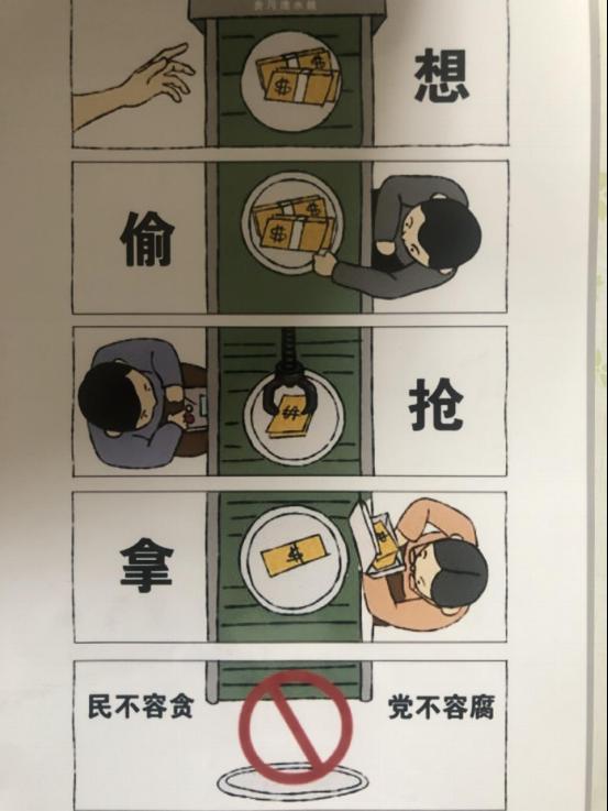 此外还有信息与计算科学教工党支部陈光祖、艺术学院陈小戈的宣传招贴作品设计贪污流水线,通过想、偷、抢、拿来体现“民不容贪,党不容腐”,紧扣廉洁主题;
