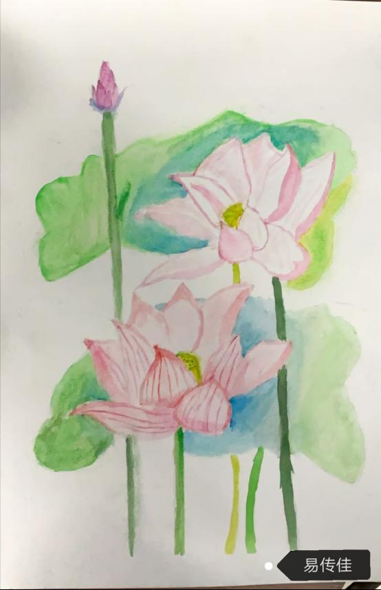 来自研究生党支部的易传佳绘制的出水莲花图用清雅的色彩传达出“青叶莲花,清正廉洁”的思想;