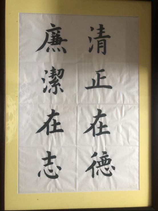 光电科创党支部的段陈曙通过端正的毛笔书法“清正在德,廉洁在志”,引用《论语》名言传递廉洁之“本”须臾不可动摇的古训。