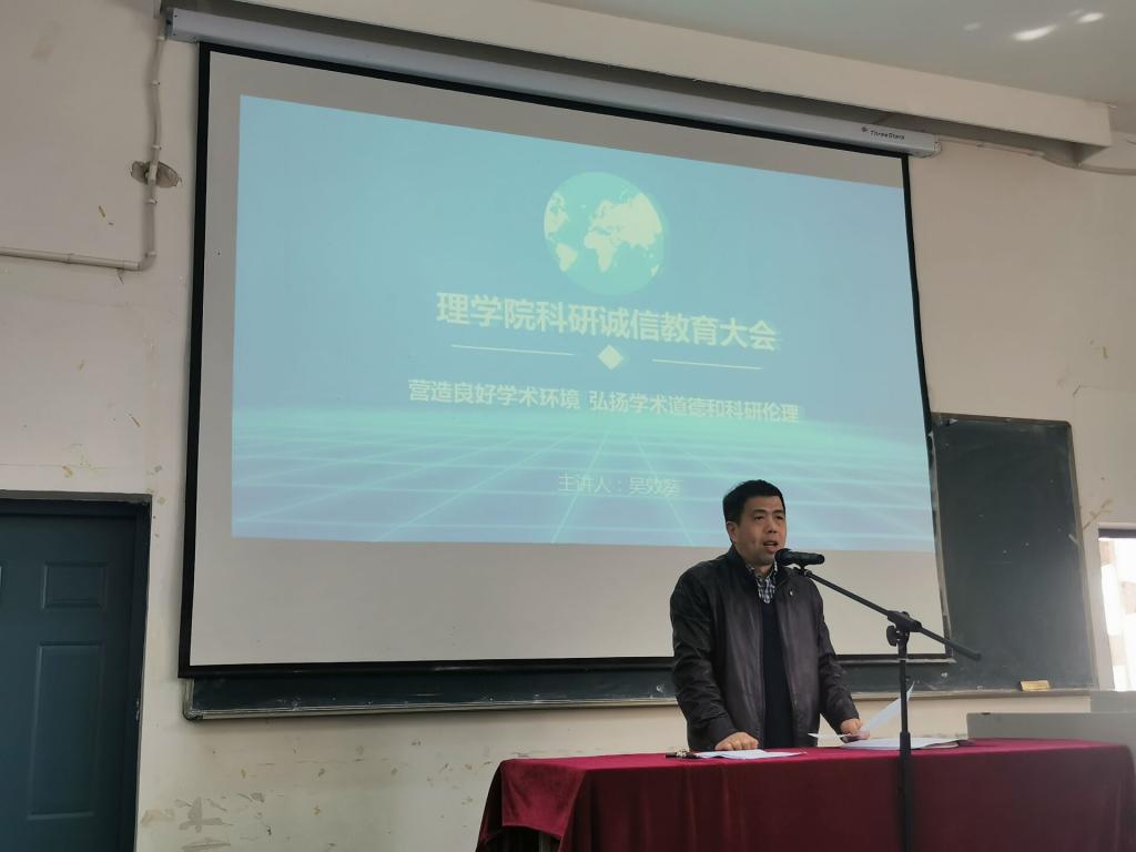 为规范基金项目申请,保证基础信息准确,进一步提高科学基金项目申请与研究工作的科研诚信,3月25日,理学院于教一栋108召开科研诚信教育大会,学院领导及理学院全体教职工参加此次大会,本次大会由理学院党委书记吴效葵主持。
