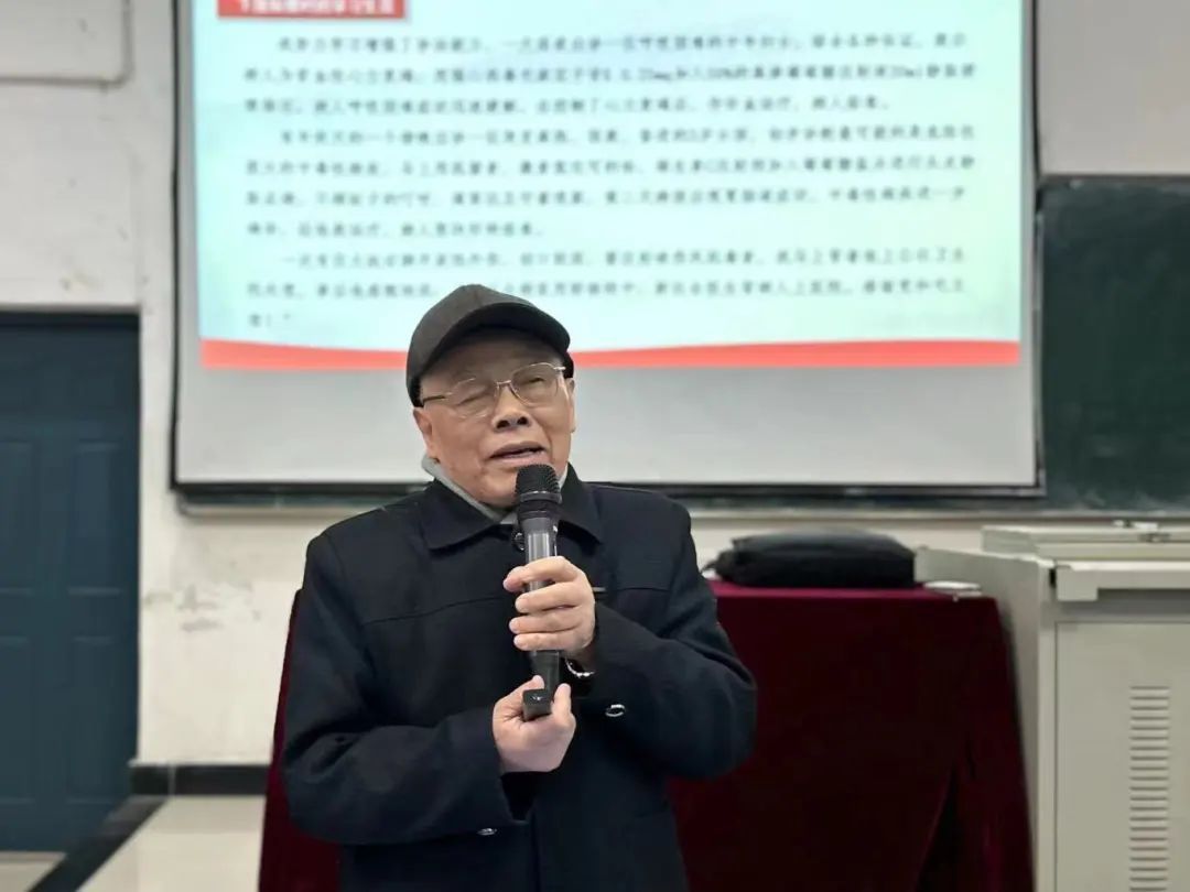 伊始,洪英俊教授通过“上大学的目的是什么?怎样才是人才?什么是教育?教育后剩下的是什么?”这四个问题引入主题,从新中国讲到新时代,从儿时讲到退休,和大家分享着自己不断奋斗的一生,过往回忆历历在目、如数家珍,当谈到初心,他的眼神中迸出坚定信念,并与大家分享了高考恢复后,自己以优异的成绩考入大学,最终成为华东交通大学的一名教授的经历。洪英俊教授将自己的青春献给教育事业,辛勤浇灌、细细耕耘,为推动学校教研、科研的发展添砖加瓦。即使退休后,依然坚持教书育人使命,继续发光发热。2015年2月,洪英俊教授不小心左踝骨骨折,为了不影响教学,他拄着拐杖进教室,没有请一天假,也不觉得辛苦,他谈到是井冈山精神,长征精神给了他力量!