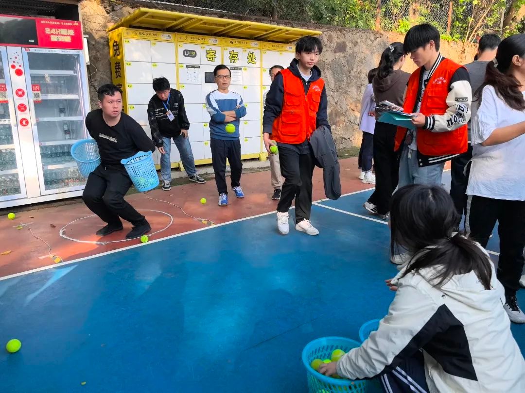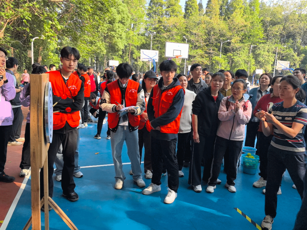 10月31日上午,南区篮球场的教职工趣味运动会依旧在热烈进行中。拾贝,飞镖,接力投篮,接力投壶,田径接力等比赛中,理学院的老师们认真备赛,积极练习,比赛现场气氛欢欣活跃,呐喊声此起彼伏。