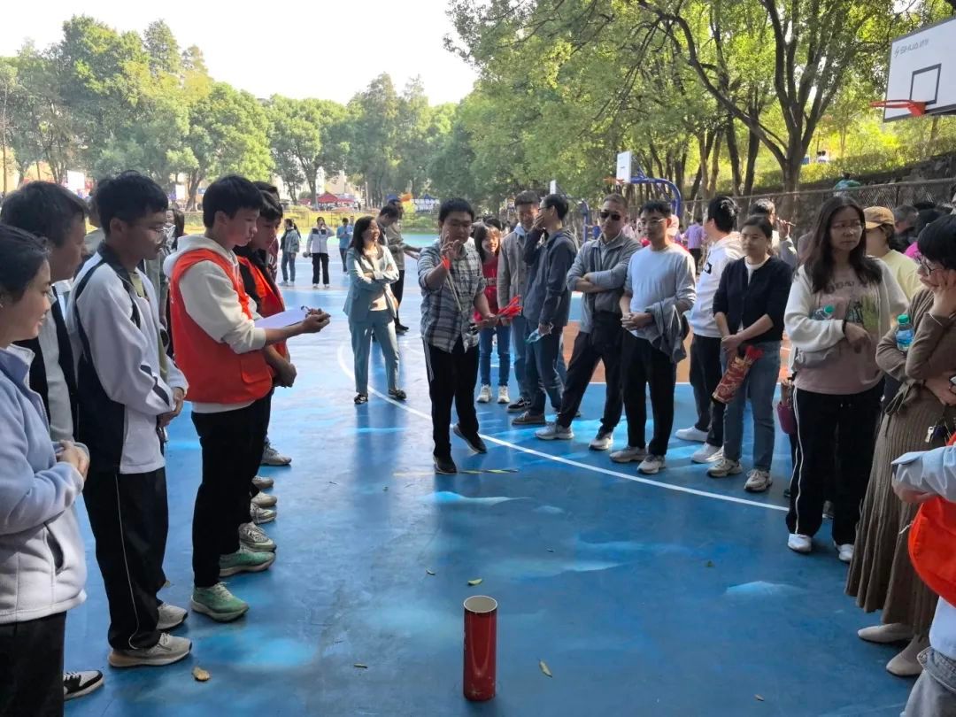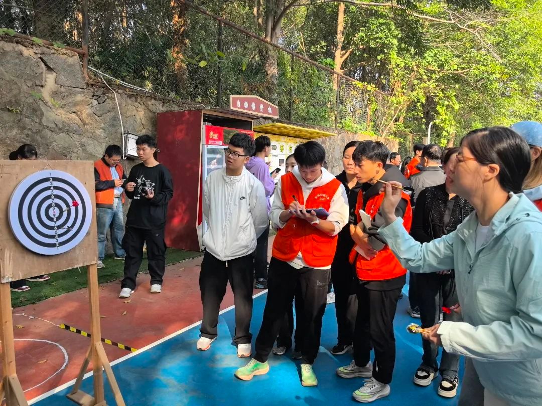 上午11:00,在接力投壶比赛中,石海泉、柳剑鹏、毋起帆、温清清、余昕、伍清萍老师手持投壶器具,在精心布置的场地内摩拳擦掌。投壶接力赛以团队合作和技巧展示为主,队伍中的每个人需完成连续投壶的任务,既考验个人技巧,也考验团队协作能力。比赛过程中,他们或稳健、或灵巧、或精准,赢得了现场观众的阵阵掌声和欢呼声。